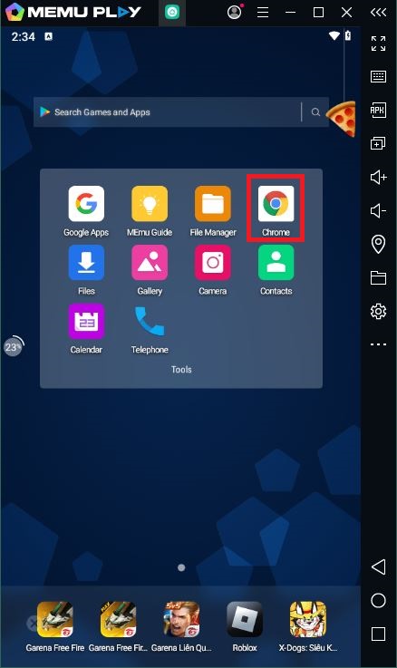 Bước 6: Ở màn hình chính Memu Play, chọn vào Google Chrome.