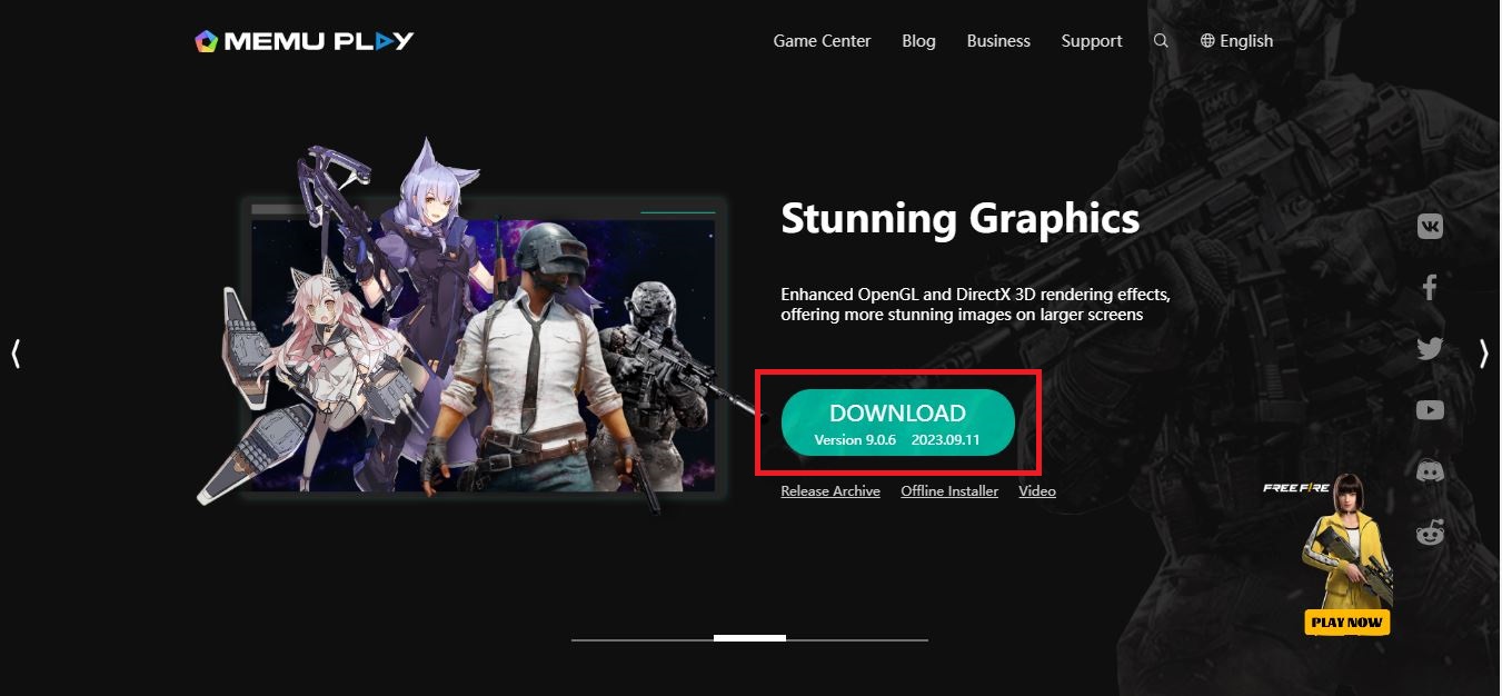 Bước 1: Truy cập trang chủ Memu Play thông qua đường link: https://www.memuplay.com/. Nhấn nút Download để lấy file cài đặt.